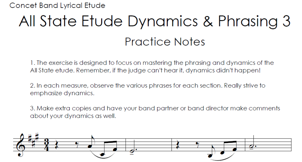 This Study Guide works best for students who have been practicing on the All-State Etude and just need to brush up on the tricky sections so that they can be nice and clean for the audition.